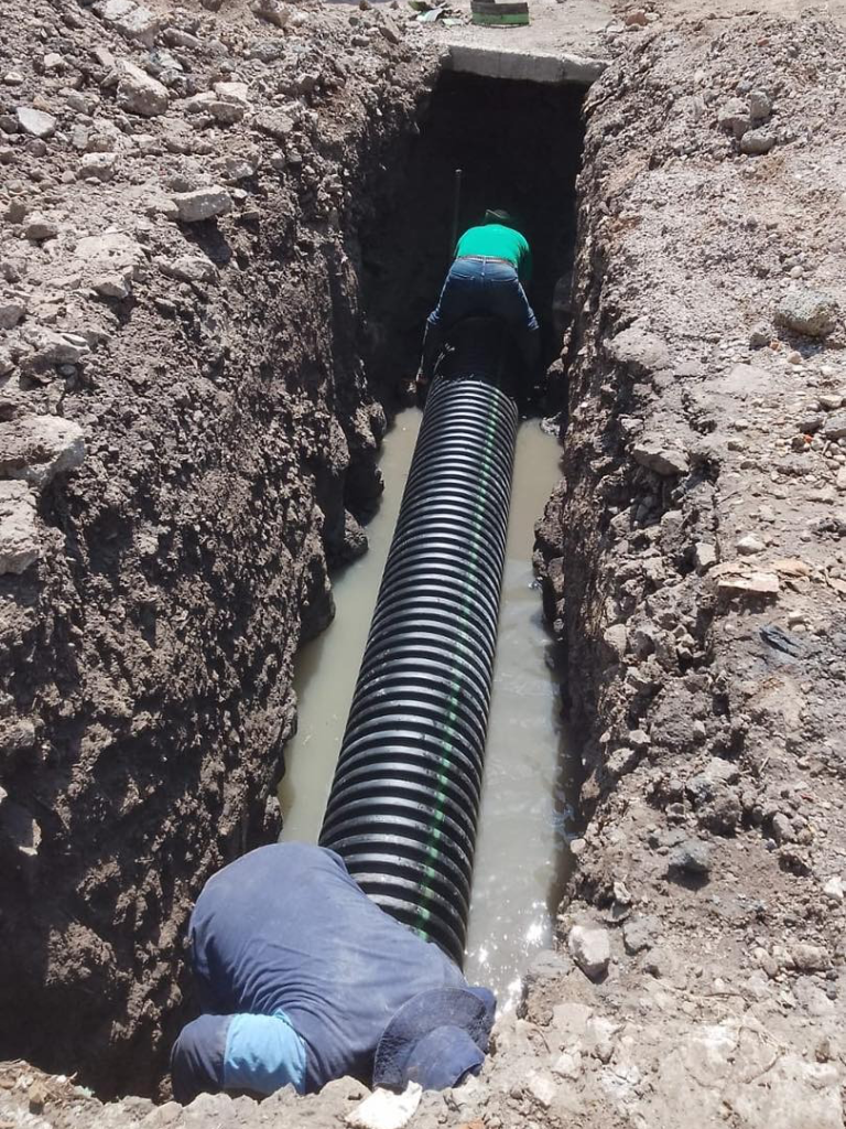 Urbanización completa para un desarrollo habitacional de 500 viviendas, incluyendo terracería, pavimentación de concreto hidráulico y redes sanitarias bajo normatividad local.